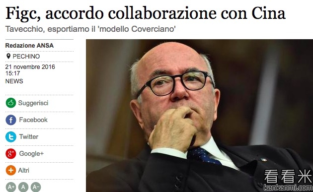 提高中国足球水平 中意双方足协签署合作协议