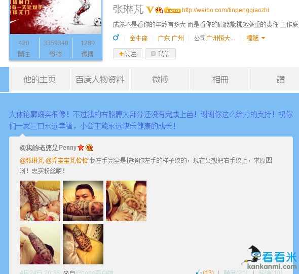 忠实粉丝模仿手臂纹身 张琳芃微博点赞感谢支持