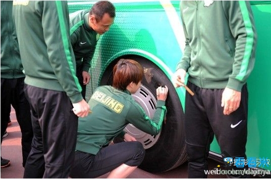 国安大巴签名萌神签在轮胎上 卖萌搞笑堪比巴洛特利