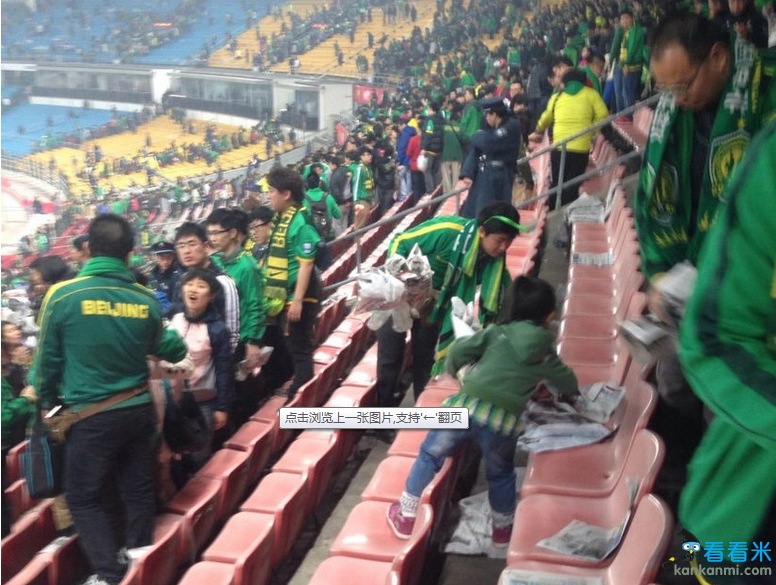 国安赢球球迷高兴做环保 父女带头清扫垃圾赢掌声