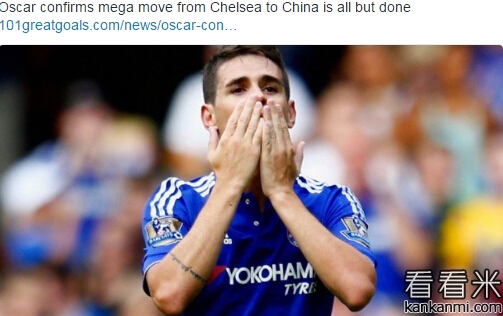 每日邮报:上港5200万镑报价奥斯卡