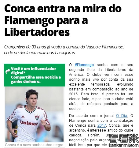 巴媒:巴甲弗拉门戈有意引进孔卡