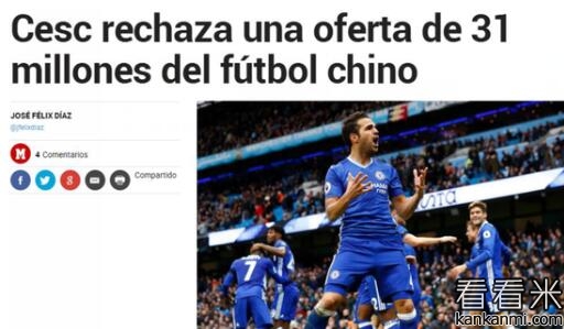 马卡报:中国球队3100万欧年薪挖小法遭拒