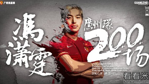 恒大战泰达赛前海报:致敬冯潇霆200场