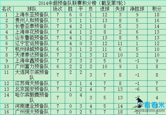 中超预备队积分榜-鲁能第五 恒大一场不胜倒数第一