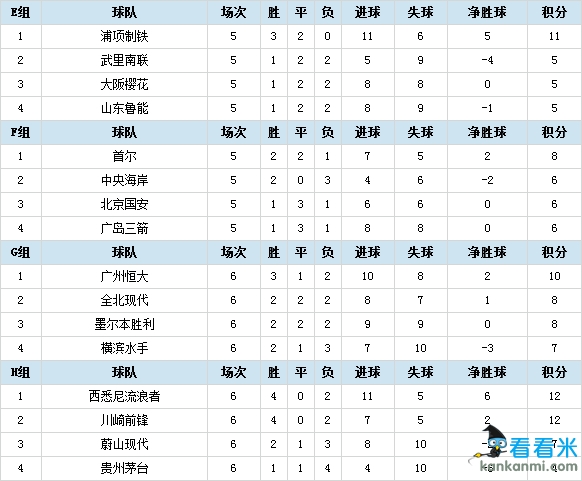 亚冠全积分榜:恒大小组头名出线 鲁能国安今晚最后一搏