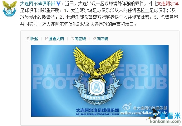 阿尔滨官方声明与诈骗案无关 望早日破案还中国足球清白